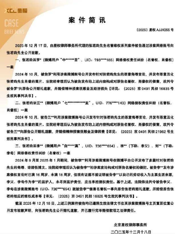 故而,张若昀这次同样选择拿起法律的武器保护自己。