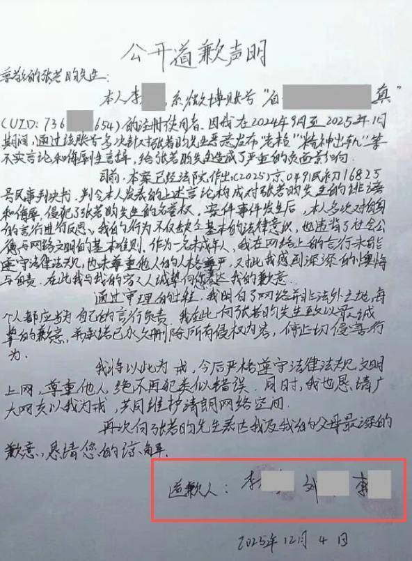 是以,李某同他的父母都需要在手写道歉声明上签字并发布。