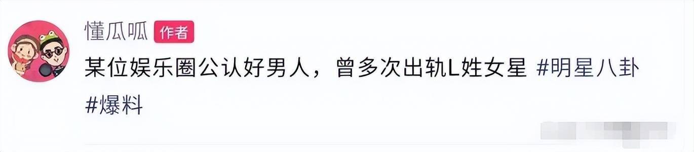 一年后,知名八卦博主在社交平台上爆料“某当红小生出轨L姓女星”。